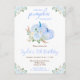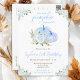 Cette invitation de fête d'anniversaire à l'aquarelle mignonne et fantaisiste présente des citrouilles bleues pastel et de beaux arrangements floraux. Le texte combine une écriture manuscrite et des polices sans serif pour un look stylé et moderne. C'est parfait pour une fête d'anniversaire d'automne.