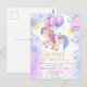Prêt pour une fête d'anniversaire sur le thème de la licorne magique ? Ce design présente une licorne aquarelle, des ballons, des arcs-en-ciel, des nuages sur un fond rose et violet et une typographie moderne "un jour magique est en route". Tout le texte est modifiable sur cette carte postale économique et une invitation d'anniversaire est également disponible ! Ce design convient à tout âge, est neutre en termes de sexe, pour les 1er et 2ème anniversaires et les enfants plus âgés. Trouvez des articles assortis dans ma boutique.