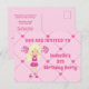 Cette invitation d'anniversaire de cheerleading rose adorable présente une jolie fille blonde cheerleader en uniforme de cheerleader tenant des pompons roses. Personnalisez cette invitation de fête d'enfants mignonne avec le nom de votre enfant en rose charmant et écrivez vos coordonnées au verso de cette carte postale.