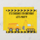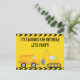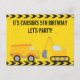 Invitation d'anniversaire personnalisée et cool avec véhicule de construction pour un enfant qui aime les véhicules de construction en noir et jaune. Carte postale amusante pour enfants pour un petit garçon qui aime les excavateurs, ainsi que les voitures et les camions à benne. Personnalisez avec les informations de la fête de vos enfants au verso.