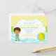 Une invitation pour une fête d'anniversaire piscine pour un garçon afro-américain. Les mots peuvent être modifiés pour répondre à vos propres besoins.