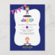 Invitation personnalisable pour une fête d'anniversaire sur trampoline bleu et violet royal selon vos spécifications d'événement.