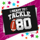 Ce design d'anniversaire de football est parfait pour une fête d'anniversaire sur le thème de football pour célébrer les 80 ans ! Caractéristiques « Prêt à s'attaquer à 80 » citation d'anniversaire de football avec graphique de football. Parfait pour quiconque aime le football qui a 80 ans !
