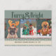 Envoyez une joie festive avec cette carte postale de vacances "Furry & Bright" ludique avec des chiens adorables habillés en costumes de Noël! Avec de jolies photos d'animaux de compagnie dans des bois de rennes, un sapin de Noël, un bonhomme de neige et une tenue en pain d'épice, cette carte vous apportera des sourires à votre famille et à vos amis. Le lettrage rouge audacieux et l'arrière - plan chaleureux en hiver ajoutent une touche de saison charmante. Customisez avec le nom de vos animaux de compagnie et l'accueil de vacances pour une carte de Noël parfaite qui fêtera la joie de la saison avec une torsion
