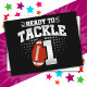 Ce design d'anniversaire de football est parfait pour une fête d'anniversaire sur le thème de football pour célébrer le premier anniversaire ! Il comporte la citation 'Prêt à tacler 1' avec un graphique de football. Parfait pour quiconque aime le football qui a 1 an !