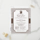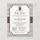 Taupe, brun et blanc élégant café, brunch wedding shower nuptiale invitation sur houndstooth motif. Il comprend une tasse à café chaude et des éléments de design formel vintages.