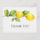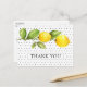 Merci à vos invités de célébrer la future mariée ! Cette douche à thème citron nuptiale merci carte postale dispose d'une branche aquarelle de citrons et de pois noirs et blancs. Personnalisez avec vos informations ou cliquez sur "Cliquez pour customiser plus loin" pour modifier les styles, la taille et les couleurs des polices. Peut également être personnalisé pour baby shower merci!