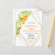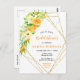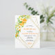 Cette invitation à la douche nuptiale amusante et fantaisiste présente des oranges aquarelles, des marguerites et du feuillage sur un cadre géométrique doré. Le texte combine écriture manuscrite et polices serif pour un look élégant et moderne. C'est parfait pour une douche nuptiale rustique d'été.