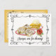 REMARQUE : Ils sont peu coûteux parce qu'ils sont faits à partir de stock de carte postale qui est GLOSSY IMAGE SIDE, MATTE RECEPE SIDE afin que vous pouvez écrire sur eux. Taille un peu inhabituelle : 4 1/2" x 5,6" Aussi disponible sur invitation stock à un prix un peu plus élevé ici : http://www.zazzle.com/my/products/public/cg-196571773826204150 DESIGN : Des cartes de recettes de dessert amusantes et rétro sont parfaites pour inclure avec n'importe quel cadeau alimentaire pour une belle présentation! Il vous suffit de le cravate sur votre emballage et d'inclure la recette pour le gâteau alimentaire spécial fait maison que vous avez créé pour eux. Les recettes sont parfaites pour les mariages, les mariés et les baby showers. À l'envers, il y a de la place pour que vos invités écrivent leur nom, les portions, le temps de cuisine, le temps de préparation, les ingrédients et les instructions. Envoyez ces cartes avec vos invitations à la douche et demandez aux invités de partager leur secret de famille préféré ou de ne pas manquer des recettes avec la nouvelle mariée ou la mère d'être. Ce design est réalisé avec des manuscrits de calligraphie dessinés à la main, des tourbillons et des éléments de séparation ainsi que des oeuvres d'Audrey Jeanne aquarellées à la main qui ont l'air si bon que vous voudrez le manger! Les couleurs arrière - plans peuvent être changées en n'importe quelle couleur à l'aide de l'outil de sélecteur arrière - plan.
