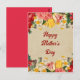 Floral brillant | Carte Fête des Mères 2025 Célébrez Maman avec notre carte postale exclusive Fête des Mères! Ornée d'illustrations délicates d'aquarelle de fleurs vibrantes, cette carte postale saisit l'essence du printemps avec ses teintes pastel, rayonnant de chaleur et de bonheur. Que vous recherchiez un design lumineux et gai ou une touche plus subtile et élégante, cette carte postale est à votre écoute. Customisez votre propre message à l'intérieur ou "clair" pour laisser l'intérieur vide et écrire votre sentiment à la main, ajoutant une couche supplémentaire d'intimité à votre salutation. Express votre amour, votre appréciation et vos souhaits chaleureux dans vos propres mots, ce qui rend cette carte postale vraiment unique et spéciale. Avec ce gardien, vous pouvez créer une mémoire chère que maman chérira pour toujours.