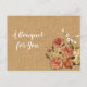 Carte Postale Fête des mères Pêcher Roses Bouquet rouille Burlap