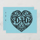 Cette carte postale pour la Fête des pères présente un design de coeur noir magnifique. Avant de la carte postale dit, "DAD" et arrière de la carte postale dit, "C'est votre journée spéciale alors détendez-vous et profitez-en. Bonne Fête des pères" ! Une belle carte postale pour envoyer papa lors de sa journée spéciale !