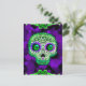 Carte Postale Fête d'Halloween de crâne de sucre lumineux vert e
