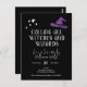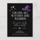 Apportez des vibes magiques à votre fête d'Halloween avec cette invitation mignonne. Texte : "Appelle toutes les sorcières et les sorcières. Rejoignez-nous pour une fête d'Halloween éffrayante !" Facile à customiser avec tous les détails de votre fête. Doté d'un casquette magicien et d'illustrations étoiles.