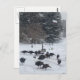 Image totalement amusante d'une volée de dindes sauvages dans une tempête de neige hivernale. Idéal pour créer une notification de rassemblement, une fête de cabane, une réunion... etc. !