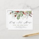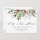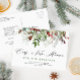 Annoncez votre nouvelle maison à votre famille et à vos amis grâce à ce design moderne composé d'un script de vacances blanc et rouge et d'un feuillage d'hiver.
