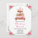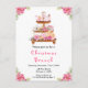 Cette invitation de brunch de vacances élégante et festive comprend un stand de gâteaux avec des biscuits de pain d'épices, des macarons, des bonbons, du cacao chaud et une théière. Dans les coins sont de belles fleurs de poinsettia roses. Le texte combine écriture manuscrite et polices sans serif pour un look élégant et moderne. Il est parfait pour un brunch de Noël ou une fête du thé.