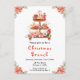Cette invitation de brunch de vacances élégante et festive comprend un stand de gâteaux avec des biscuits de pain d'épices, des macarons, des bonbons, du cacao chaud et une théière. Dans les coins sont de belles fleurs de poinsettia rouges. Le texte combine écriture manuscrite et polices sans serif pour un look élégant et moderne. Il est parfait pour un brunch de Noël ou une fête du thé.