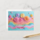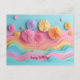 Cette carte postale personnalisable d'anniversaire offre un design de style coupé en papier avec des tourbillons colorés, des vagues et des feux d'artifice.