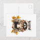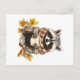 Carte Postale Feuilles d'automne confortable raccoon avec tasse