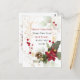Ce design présente la composition de Noël de Poinsettia, feuilles verts et or, cône de pin, guirlande légère et baies rouges. Sur le dessus de la carte postale - confetti d'effet doré.