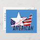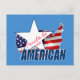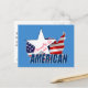 Drapeau américain en forme de carte des Etats-Unis, étoile blanche avec contour bleu, texte rouge et bleu Fier d'être un Américain. Le Jour de l'Indépendance et d'autres occasions des cadeaux patriotiques et des souvenirs pour tout le monde. Carte postale pour tous. Personnalisable . Vous pouvez modifier l'image et modifier ou supprimer le texte modèle au dos de la carte. Profitez du Jour de l'Indépendance !