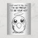 Un magnifique dessin d'un oiseau ange qui réchauffe le coeur en disant : "Je veux juste vous dire que je suis si fier d'être votre enfant !" Cela rendra un joli hommage aux parents d'oiseaux, aux mamans et aux papas, qui ont perdu leurs oiseaux, des idées cadeaux parfaites pour les amateurs d'oiseaux, les propriétaires, les perronts et les éleveurs. Disponible sous forme de t-shirts, de cartes, de sacs et d'autres marchandises. Tous les animaux de compagnie vont au paradis, y compris les oiseaux de compagnie. C'est ce que je crois. Ils deviendront des anges, en nous regardant, en attendant le bon moment pour nous rencontrer à nouveau sur le pont arc-en-ciel. J'ai dessiné ça en mémoire d'amour de mon oiseau d'amour, Pocky, un petit perroquet qui vivait trop court mais qui a laissé le plus grand impact de ma vie. Une perte d'oiseau n'est jamais facile. Pour certaines personnes, les oiseaux sont de la famille. Envoyez ce cadeau à un parent oiseau en deuil, à des mamans et à des papas pour montrer votre profonde sympathie. J'espère que le dessin et les mots réduiront leur douleur même un peu. :)