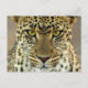 Léopard de glace avec de belles marques faciales, des yeux jaunes percevants et un regard intense. Grand cadeau pour tous ceux qui aiment les grands chats.