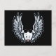 Joli crâne de dessin animé avec arc noir et grandes ailes. T-shirts, sueurs, cartes, cadeaux.