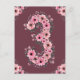 Carte Postale Fille 3ème anniversaire grandes fleurs roses feuil
