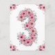Carte Postale Fille 3ème anniversaire grandes fleurs roses feuil