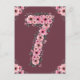 Carte Postale Fille 7ème anniversaire rose fleurs feuillage vert