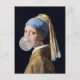 Carte Postale Fille à oreille perle soufflant une gomme à bulles