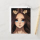 Carte Postale Fille Anime Brunette aux Yeux Bleus Anniversaire