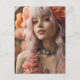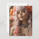 Carte Postale Fille avec cheveux roses et fleurs