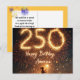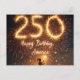 Une jeune fille tenant une étincelle se tient debout sur un fond de feux d'artifice vibrants, avec le nombre "250" et les mots "Joyeux Anniversaire, Amérique" illuminés dans le ciel.