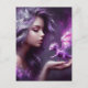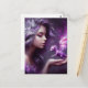 Carte Postale Fille avec un minuscule Dragon violet