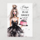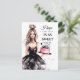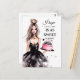 Carte Postale Fille blonde robe noire gâteau d'anniversaire aqua