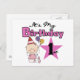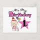 T-shirts, costumes, cartes, autocollants, magnets, sacs et autres vêtements de premier anniversaire de la fille de bébé et cadeaux avec une petite fille dans un T-shirt rose, une couche et un casquette de fête avec des ballons d'anniversaire!