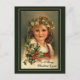 Conçu par Susan Epps Oliver. Une belle image vintage de Noël d'une petite fille dans une robe rouge et blanche et portant une couronne sainte dans ses cheveux.