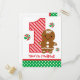 Joli Noël 1er anniversaire design avec un sucre de canne rayé numéro 1, adorable petite fille en pain d'épice et bonbons de menthe rayée rouge et verte. PinkInkArt original!.