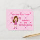 Cette invitation de fête d'anniversaire de pom-pom girl rose adorable avec carte postale comporte une jolie fille brune en uniforme de pom-pom girl tenant des pom-poms roses. Personnalisez cette invitation de fête pour enfants avec le nom de votre enfant en rose charmant et écrivez vos coordonnées au dos de cette carte postale.