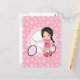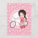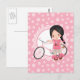Carte Postale Fille de vélo aux cheveux noirs - Rose blanc