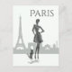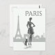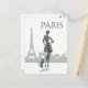 Carte Postale Fille et chat à Paris avec Tour Eiffel Gris