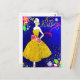 Carte Postale Fille Glamour Fête d'anniversaire Floral Or Paille