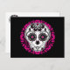 Ma version d'un crâne sucré super mignon en blanc, rose chaud et noir avec beaucoup d'élégants accents sur un arrière - plan coordinateur. Montré ici sur une carte postale.