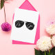"Fly Girl" police d'écriture blanche sur des lunettes de soleil Aviator, carte d'anniversaire d'aviation amusante et mignonne.