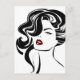 Joli, vintage thème girly en noir et blanc. Un beau visage de femme aux lèvres rouges et aux cheveux bouclés. Amusant, dessin rétro.