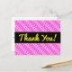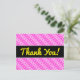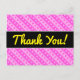Cette carte postale amusante et girly présente des rangées de formes cardiaques de couleur rose pâle dans des rayures de couleur rose foncé, et des formes cardiaques de couleur rose foncé dans des rayures de couleur rose pâle. Il comporte également le message d'appréciation "Merci !" sur le devant en texte jaune, ainsi qu'un message customisé de remerciements sur le dos.