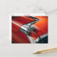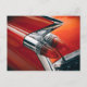 Cette carte postale est une photographie de la nageoire arrière et des feux arrière d'une Cadillac de 1959.